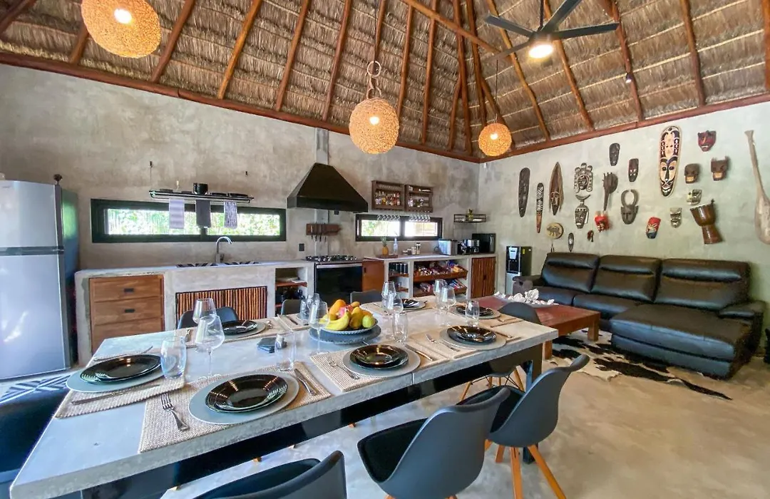 Gästerna är välkomna att förbereda måltider i ett komplett kök. Det finns också matplats utomhus och mathörna. Gästerna kan dra nytta av kylskåp, ugn och köksredskap, samt te-/kaffebryggare. Gästerna kan också nå Aldea Pukna Villa med bil från Playa del Carmen flygplats på 33 minuter. Koppla av och njut av en avsvalkningspool och en privat trädgård. Avsvalkningspool erbjuds för avkoppling. Gästerna har tillgång till sportaktiviteter som snorkling, dykning och kanotpaddling. Fritidsmöjligheter som bordsspel och leksaker finns tillgängliga i den här villan för barnens underhållning.